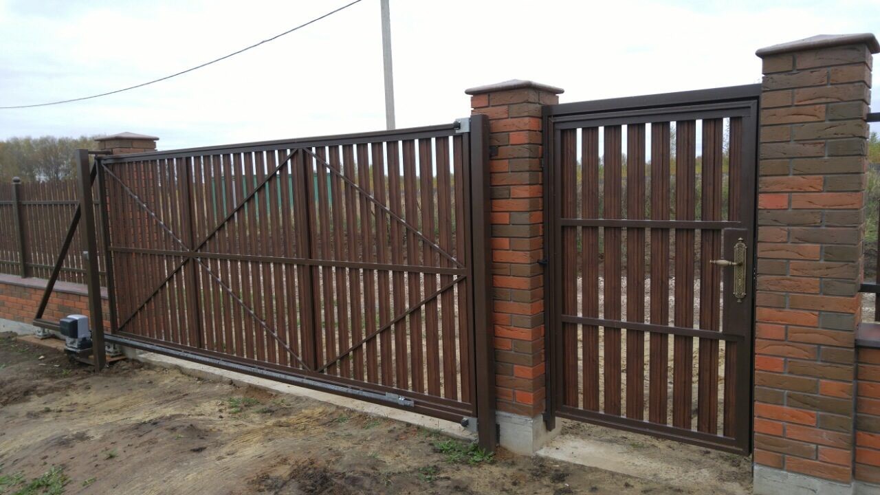 Откатные ворота из профнастила на винтовых сваях (цена на бетонном основании +20000р)